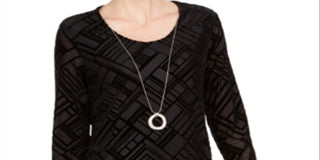JM Collection Blusa de veludo feminina preta tamanho médio