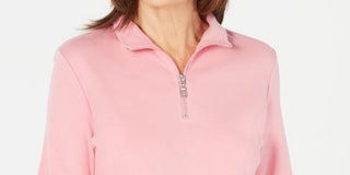 Karen Scott Blusa de algodão feminina com meio zíper e gola alta, rosa escuro, tamanho pequeno
