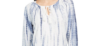 Blusa estilo camponesa com mangas bufantes e tie-dye estilo & co, azul, tamanho extrapequeno