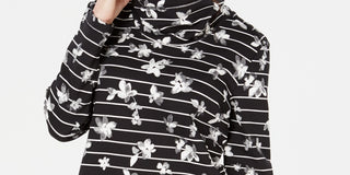 Blusa feminina Karen Scott com estampa floral e gola funil listrada, preta, tamanho PS