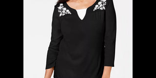 Blusa feminina Karen Scott de algodão bordado com camadas, tamanho pequeno, castanho, tamanho G