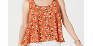 Top feminino sem mangas com estampa estilo & co, decote alto e decotado, laranja, tamanho pequeno e pequeno