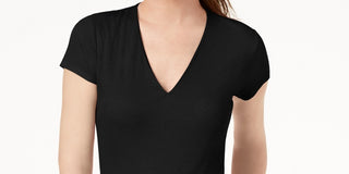 Blusa feminina com decote em V canelado da INC International Concepts, preta, tamanho grande