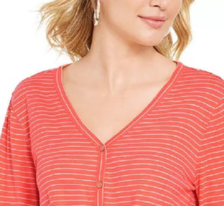 Blusa listrada com amarração frontal Style & Co feminina, laranja brilhante, tamanho extragrande