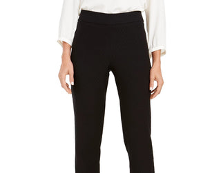 Calça reta com estampa jacquard da coleção feminina JM, preta, tamanho extra pequeno