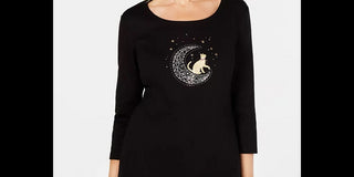 Karen Scott Blusa Feminina Manga 3/4 de Algodão com Enfeites Preto Tamanho Médio