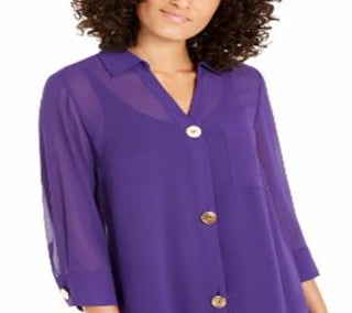 Blusa feminina Alfani semi transparente com manga 3/4, roxa, tamanho pequeno