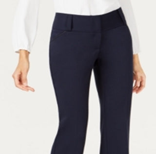 Calça feminina Alfani com acabamento em couro sintético e perna larga, tamanho 24x4,5, azul