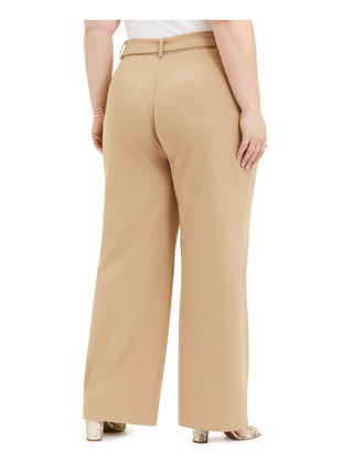 Calça feminina casual com bolso e cinto, INC International Concepts, bege, tamanho 14W