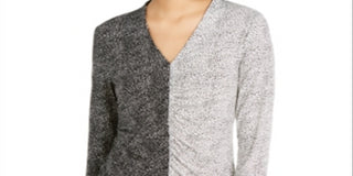 Blusa feminina Alfani com estampa mista e franzido na frente, preta, tamanho pequeno e pequeno