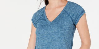 Blusa feminina Ideology azul-petróleo com manga curta e decote em V, tamanho médio