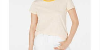 Camiseta feminina Maison Jules com decote redondo e alças finas, amarela, tamanho X-S