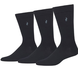 Polo Ralph Lauren Masculino Pacote com 3 Meias Masculinas Lisas Supermacias com Logotipo Bordado Preto Tamanho 13-16