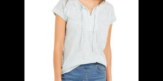 Blusa listrada com decote em V e amarração Style & Co feminina, tamanho P, azul