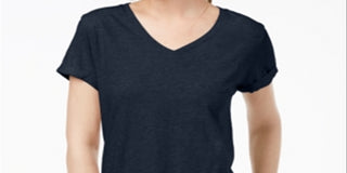 Camiseta feminina estilo & co com decote em V e estampa Burnout, azul, tamanho pequeno e pequeno