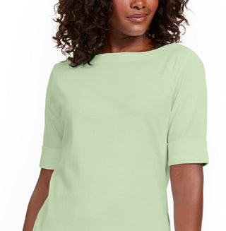 Blusa feminina Karen Scott de algodão com decote canoa, verde, tamanho extragrande
