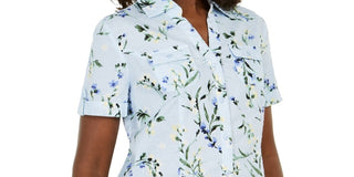Camisa feminina Karen Scott de algodão com estampa floral, azul, tamanho médio