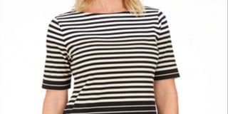 Karen Scott Blusa listrada com decote canoa feminina, marrom, tamanho pequeno P
