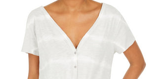 Charter Club Blusa feminina estampada com manga 3/4, branca, tamanho pequeno G