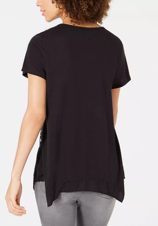 Camiseta feminina com estampa gráfica e bainha em lenço, estilo & co, preta, tamanho médio