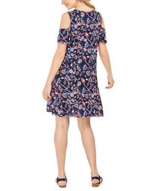 Vestido feminino estilo & co com estampa de ombro vazado, azul marinho, tamanho extrapequeno