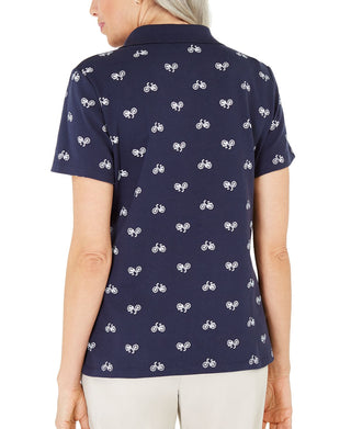 Camisa polo feminina Karen Scott com estampa de bicicleta, azul, tamanho extragrande