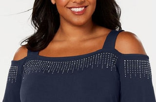 JM Collection Top Feminino com Ombros Descobertos e Enfeitado Azul Escuro Tamanho P