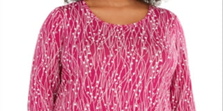 JM Collection Top feminino estampado com decote redondo plus size rosa 0X