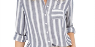 Camisa feminina Charter Club de linho com amarração frontal, azul, tamanho pequeno e pequeno