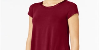 Túnica feminina Charter Club French Terry com decote em V, vermelha, tamanho X-S