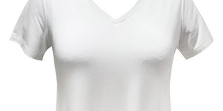 Camiseta feminina com decote em V da coleção JM, branca, tamanho pequeno