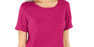 Blusa feminina Karen Scott de algodão com pesponto rosa, tamanho X-S