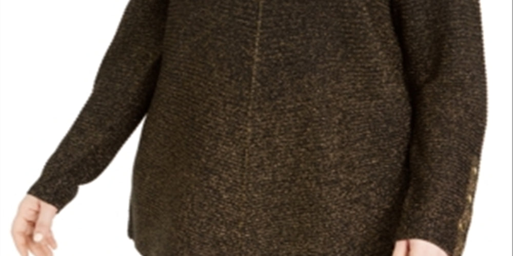 o tricô canelado com manchas metálicas do suéter plus size da alfani adiciona brilho extra a qualquer roupa | uma bainha assimétrica e detalhes costurados adicionam um visual alongado perfeito