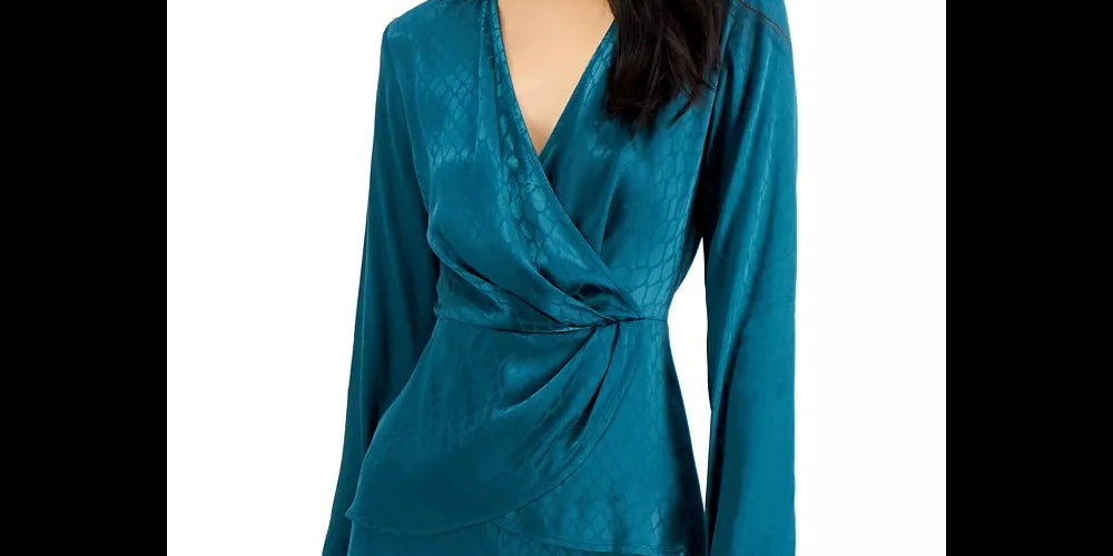 Blusa Alfani Feminina com Estampa Tonal Surplice Azul Marinho Tamanho Extra Grande