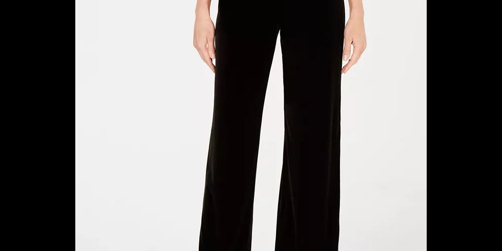Calça feminina Alfani de veludo com perna larga, preta, tamanho grande