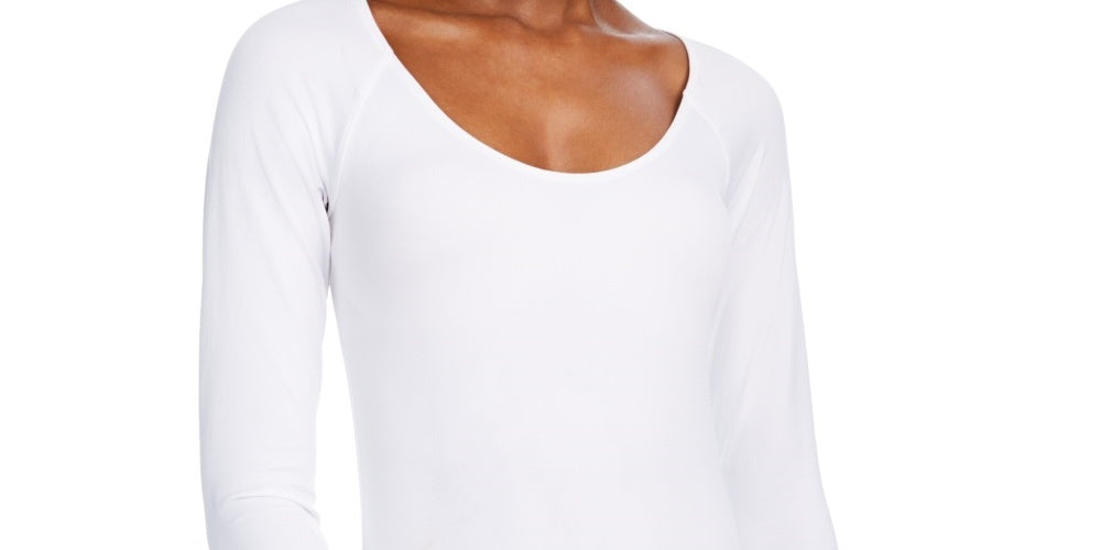 Aproximadamente 63 cm de comprimento; parte inferior ousada | Decote redondo; estilo pull-on com fechos de pressão | Mangas 3/4 | Nylon/elastano