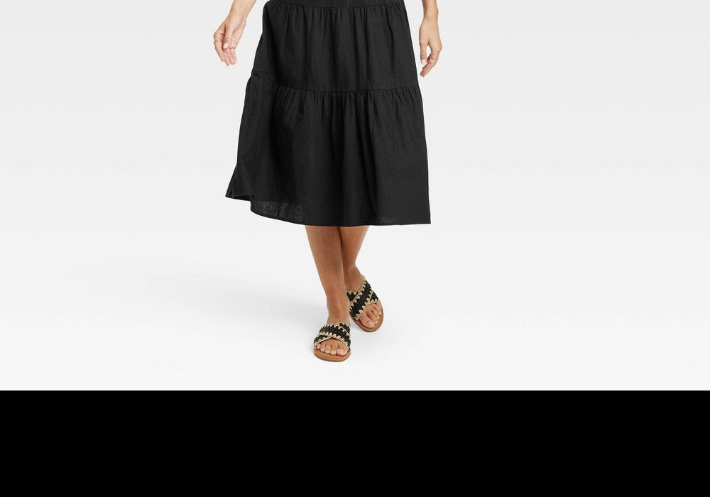 Design sem mangas | Macio | Material de linho fresco | Detalhes franzidos | Comprimento midi | Cor preta versátil | Tamanho P | Design elegante de vestido de verão | Marca Universal Thread