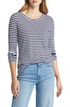 Camiseta Caslon feminina listrada Brooke azul marinho e branca, manga comprida, tamanho pequeno