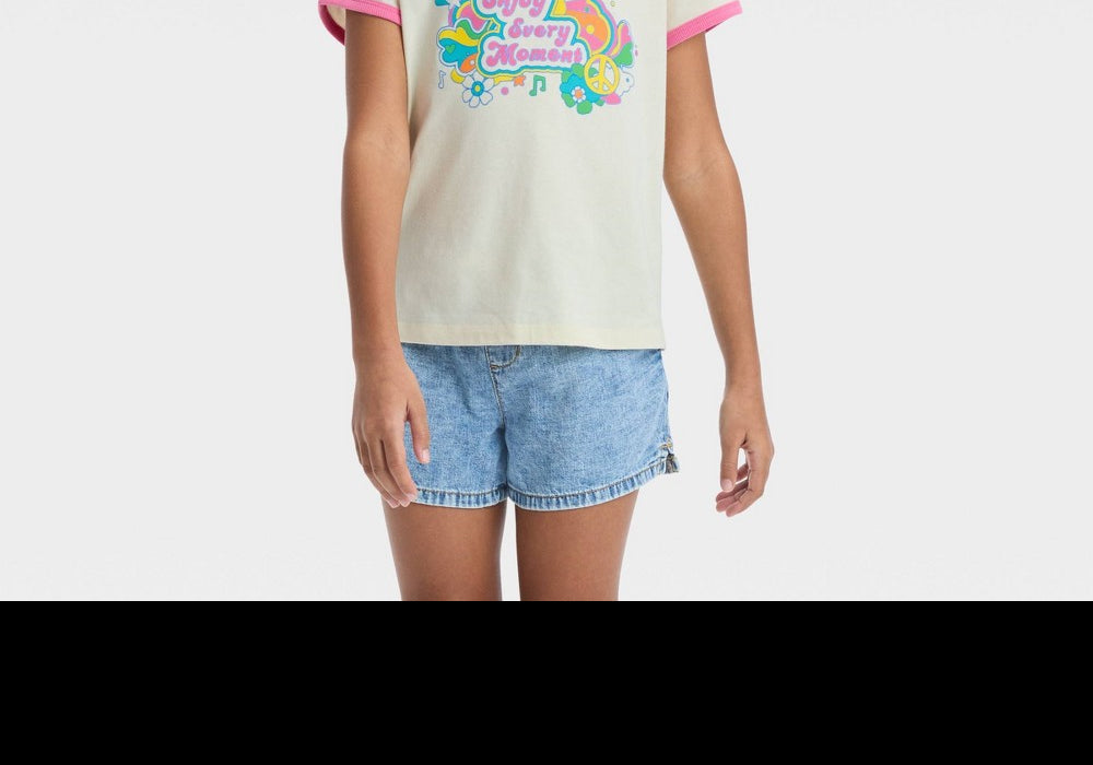 Mangas curtas | Estilo Ringer | Tamanho XXL Plus | Cor branca Boysenberry | Feito de algodão | Marca Cat & Jack | Lavável à máquina | Ajuste clássico | Gola canelada | Design versátil