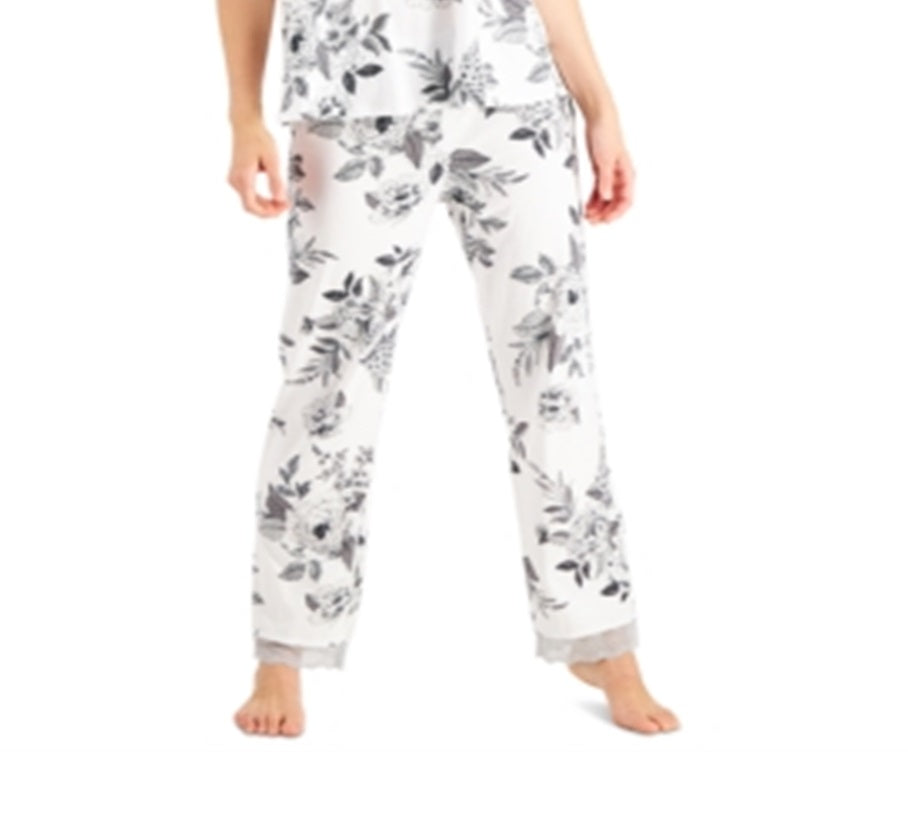 Acabamentos em renda recortada conferem um estilo moderno ao conjunto de pijama com estampa floral da Charter Club. | Blusa; comprimento nos quadris; decote em V; estilo pulôver; mangas curtas de renda | Calça; comprimento no tornozelo; costura interna de aproximadamente 28; acabamento em renda na bainha; cintura elástica de cintura média | | Algodão/rayon | Lavável à máquina | Importado