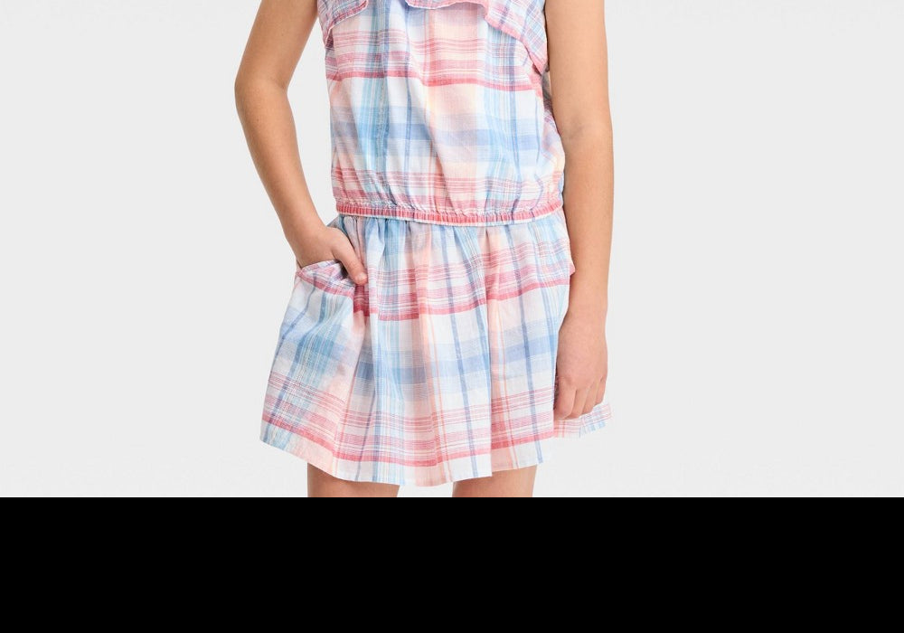 Tecido trançado para maior durabilidade | Estampa xadrez moderna | Apresenta cores patrióticas vermelho | branco | azul | Regata | perfeita para o verão | Tamanho GG para meninas | Da renomada marca Cat & Jack™ | Fácil de limpar e manter | Macio e confortável de usar | Estilo versátil | pode ser usado de forma formal ou informal | Leve para o máximo conforto.