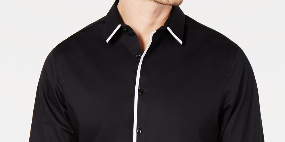 Ajuste regular | Gola pontuda | Fecho frontal com botões | Acabamento contrastante na gola e na carcela frontal