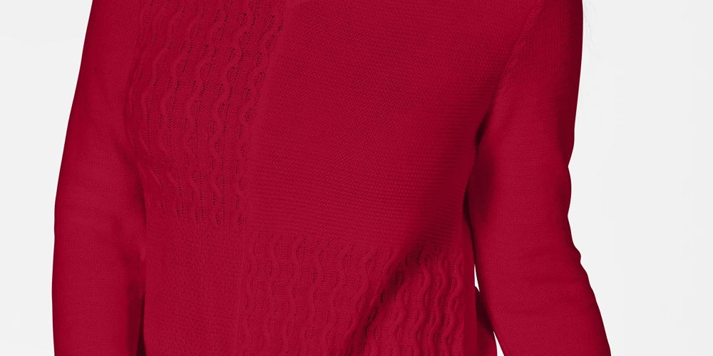 Karen Scott Suéter Feminino de Algodão com Ponto Misto Vermelho Brilhante Tamanho Grande