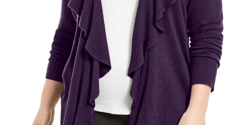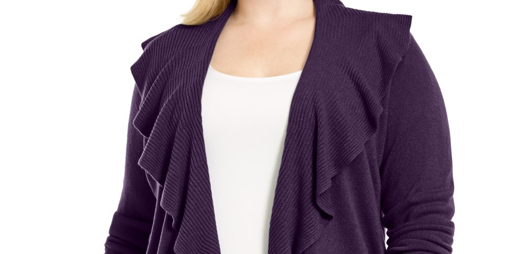 Karen Scott Suéter feminino plus size com decote babado e manga comprida, roxo, tamanho 2X