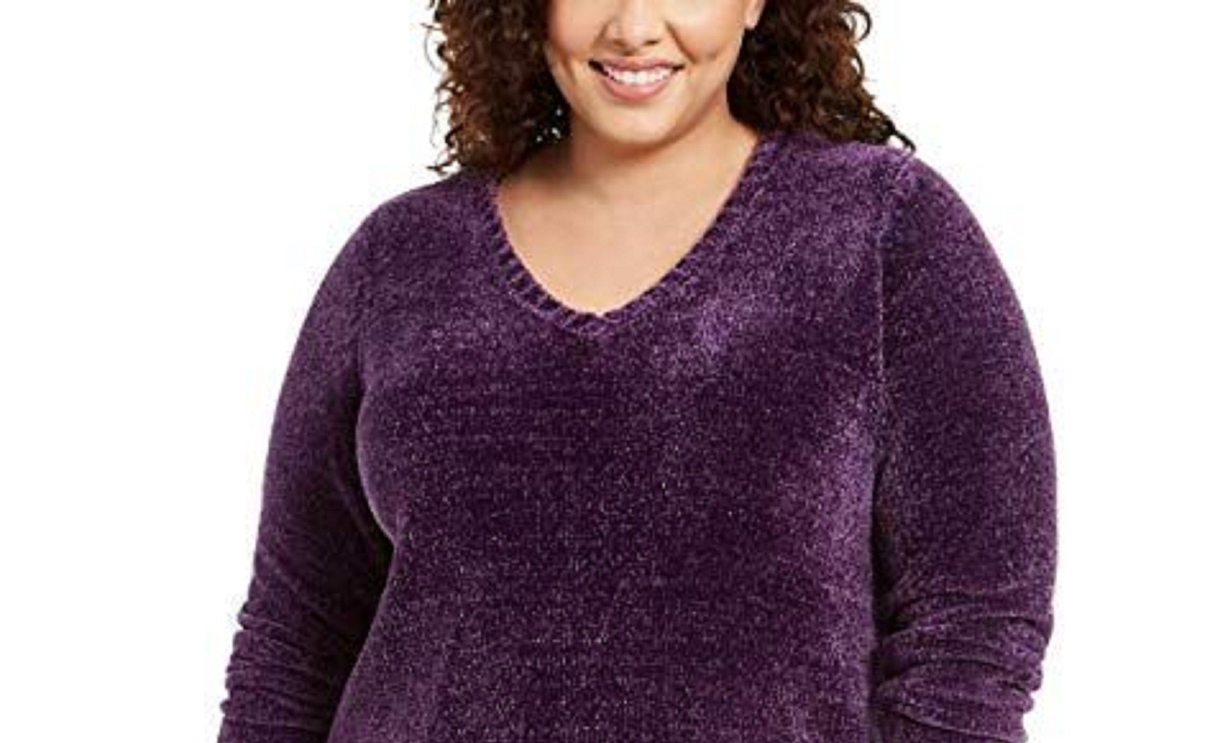 A altura aproximada da modelo é 5'10" e ela está vestindo tamanho 1X | Aprox. 29-1/2" de comprimento | Decote em V | Poliéster | Lavável à máquina | Importado