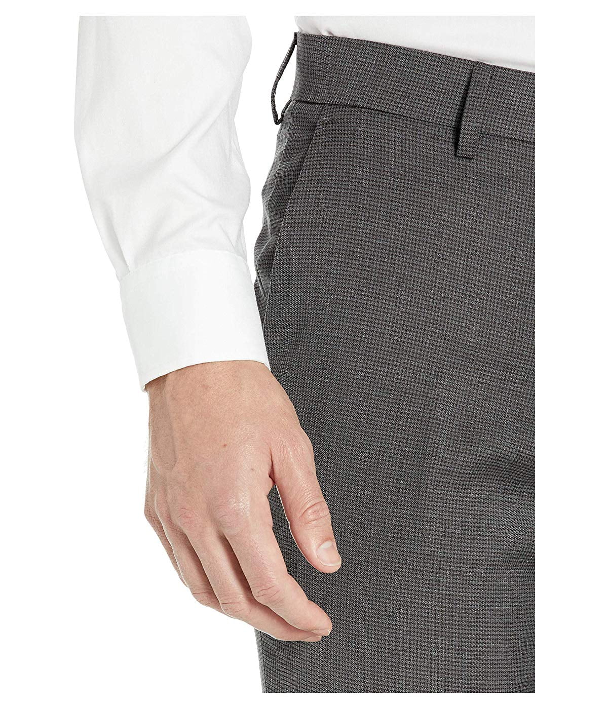 Calça social masculina Kenneth Cole Reaction com estampa xadrez micro elástica e corte skinny pied-de-poule, frente lisa, cinza, tamanho 34x32