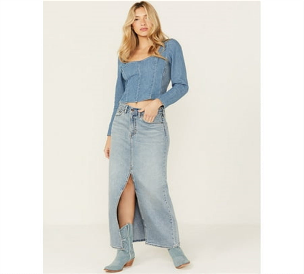 Saia jeans Levi's Premium Ankle Column Feminina Azul Claro Lavado