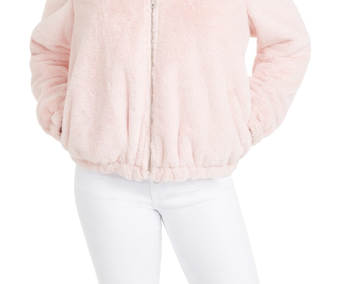 Aproximadamente 23-3/4" de comprimento do centro das costas até a bainha | Capuz com cordão; fecho de zíper frontal | Falso em toda a peça | Dois bolsos na frente | Forrado | Reversível em poliéster liso | Exterior, forro: poliéster