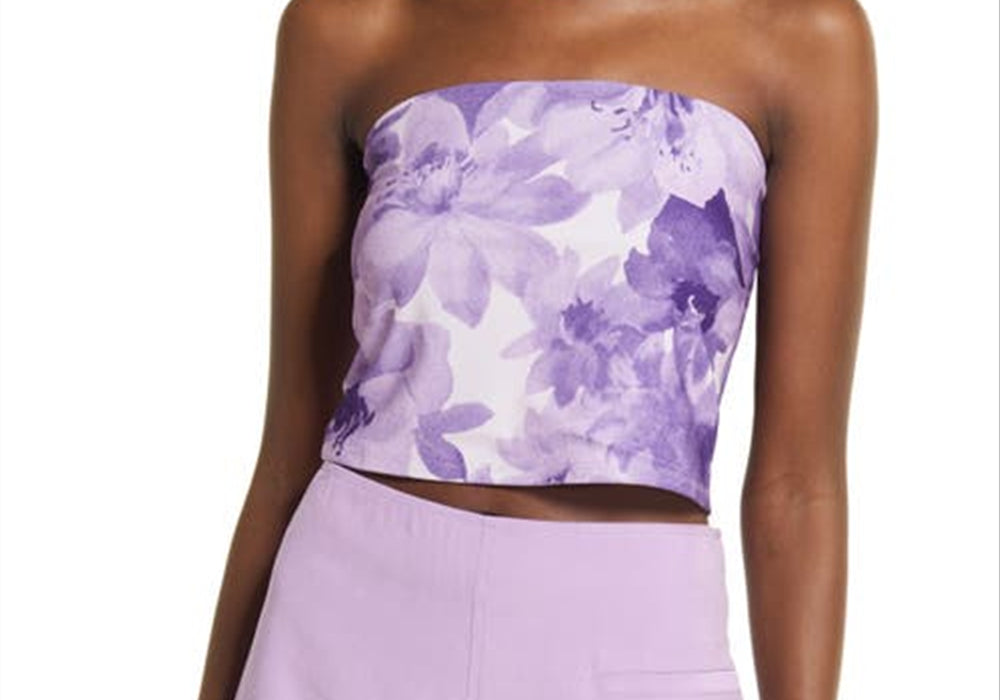 Estampa Purple Moss Bloom | Design sem alças | Caimento relaxado | Decote tipo tubo elástico | Tecido leve | Tamanho médio | Ideal para o verão | Look casual estiloso | Da Nordstrom | Abrir edição da marca