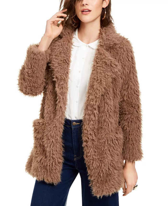 Casaco de pele sintética Shaggy Penny Lane da Sage The Label para mulheres, marrom, tamanho grande